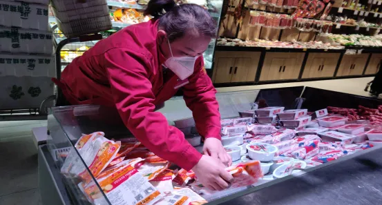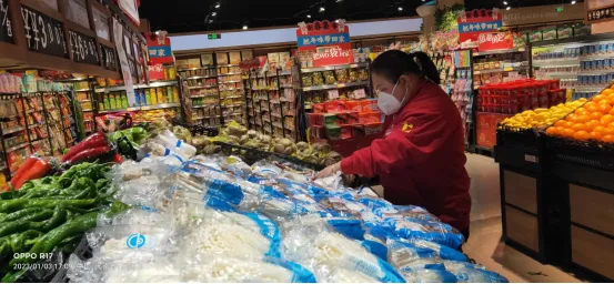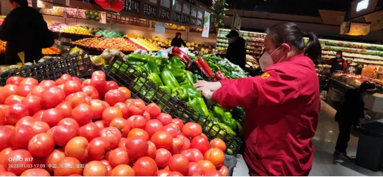 隨著疫情的放開,很多的家人都開始生病發(fā)燒,東城花園店的蔬菜區(qū)七個人有五個開始生病請假,偌大的蔬菜區(qū)瞬間只剩了三個人在崗位上,其中有一個還是帶病工作,蔬菜主管宋彥利也未幸免被感染了,她嗓子嘶啞渾身無力,就算如此她依舊堅持在門店工作,上了班就是在蔬菜區(qū)拉貨上貨、稱秤、打掃衛(wèi)生,不停地忙碌。