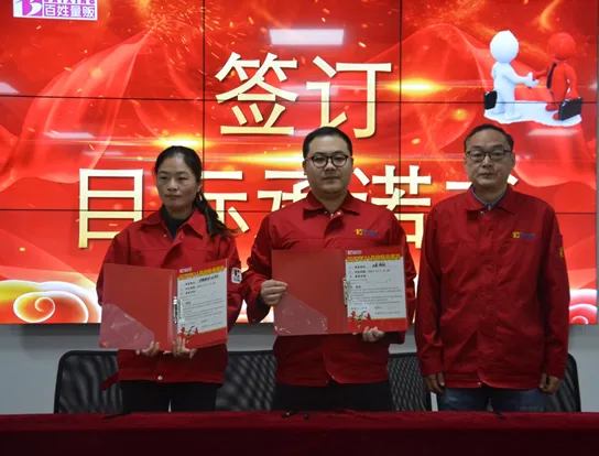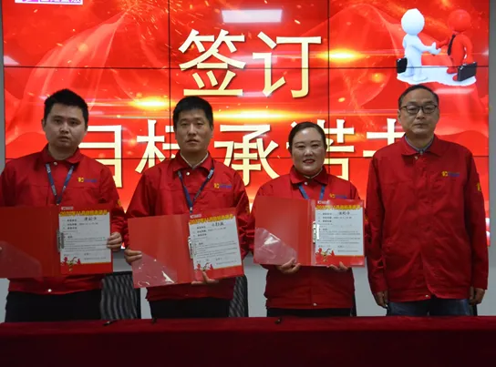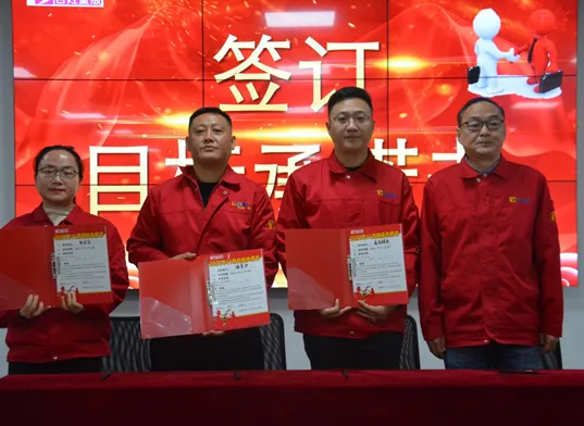 銷售副總劉衛(wèi)與外阜/便利區(qū)域經(jīng)理(李濮東、劉凱、趙靜)簽訂目標(biāo)責(zé)任書(shū)