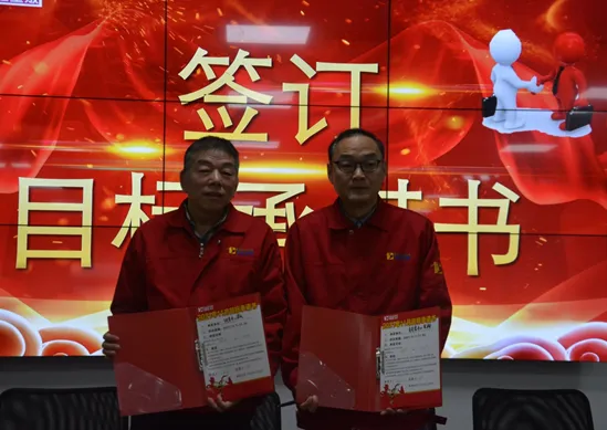 經(jīng)營(yíng)副總王杰與銷售副總劉衛(wèi)簽訂目標(biāo)責(zé)任書(shū)
