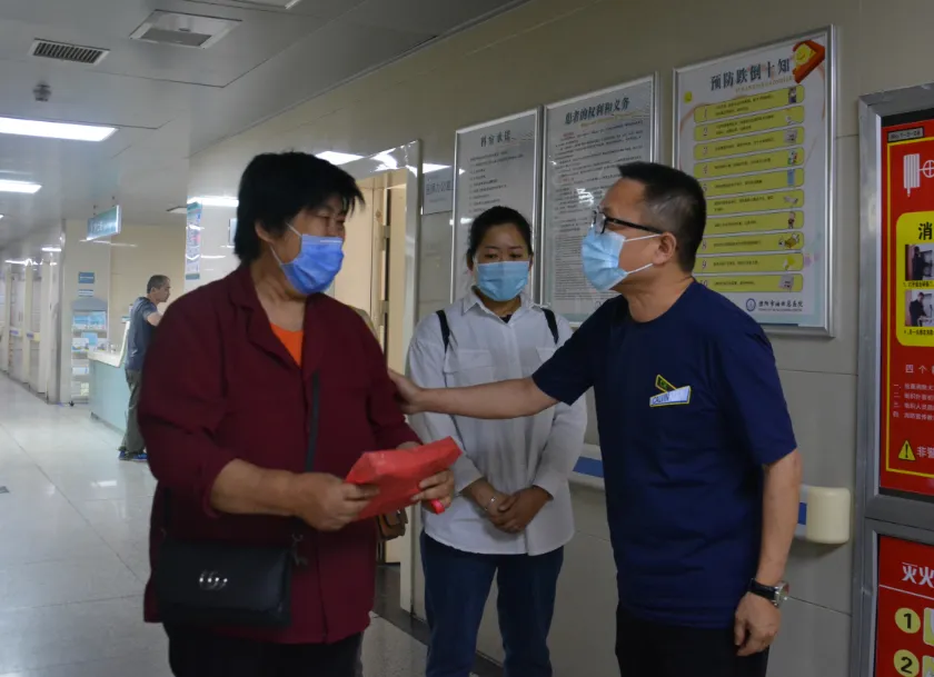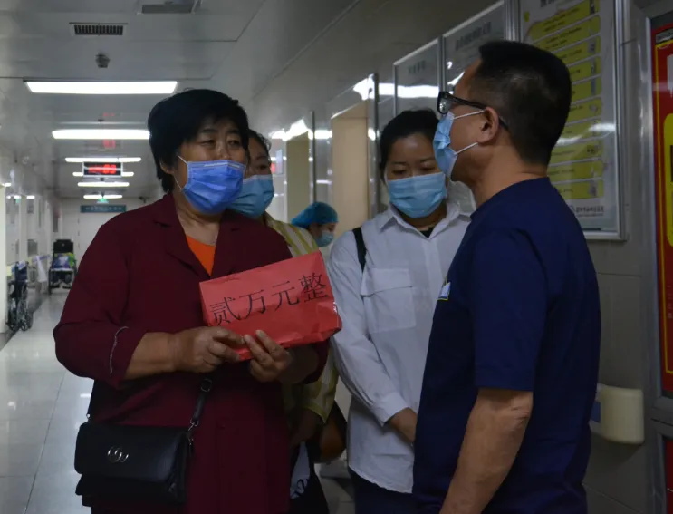 這件事引起了百姓量販董事長程建的重視,5月28日上午,百姓量常務(wù)副總張聯(lián)群代表公司到油田總醫(yī)院重癥監(jiān)護(hù)室外看望了李章勇,并將20000元善款交到了李章勇母親手中。