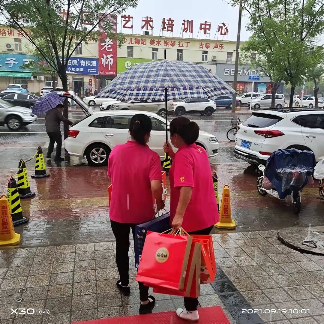 每家門店自行組建了“愛心服務(wù)小分隊”,為雨天未帶傘的顧客主動撐傘送貨至乘車處,;店內(nèi)愛心雨傘、雨衣免費使用;撐傘護(hù)送顧客;讓到店的顧客感受到不一樣的溫馨服務(wù)。對于騎電動車及自行車前來購物的顧客,“愛心服務(wù)小分隊”積極為顧客先把車座擦干凈并套上塑料袋,避免弄濕顧客的衣服,讓顧客體會到百姓的愛心服務(wù)是認(rèn)真的。