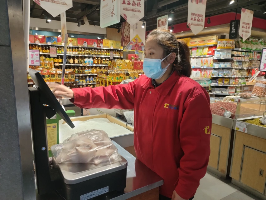 這次疫情期間,中原店生鮮區(qū)員工紛紛生病請假,最后蔬菜區(qū)剩一個人,水產(chǎn)區(qū)剩一個人,面點區(qū)剩一個人,堂食沒有人,肉區(qū)也全軍覆沒。在此情況下,生鮮處長王改如面對多方壓力,勇于面對,開啟一人多崗模式,沒有主管報貨就自己來報貨,沒有員工接貨就自己來接貨,沒有員工上貨就自己一筐一筐的往貨架上上貨,沒有員工稱重就邊干活邊兼顧著給顧客稱重。就這樣,王改如和店內(nèi)僅有的幾個家人一起,從早到晚,不停的工作,從來沒有一句抱怨!