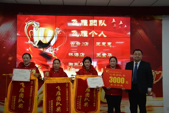表彰會(huì)先后頒發(fā)了優(yōu)秀員工、優(yōu)秀導(dǎo)購(gòu)獎(jiǎng)、飛雁團(tuán)隊(duì)獎(jiǎng)、飛雁個(gè)人等獎(jiǎng)項(xiàng),獲獎(jiǎng)的單位及個(gè)人都是在崗位上默默付出并做出突出業(yè)績(jī)的先進(jìn)單位和個(gè)人。