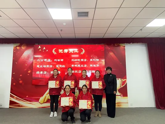 財(cái)務(wù)中心總監(jiān)程艷為外阜門店優(yōu)秀員工頒獎(jiǎng)